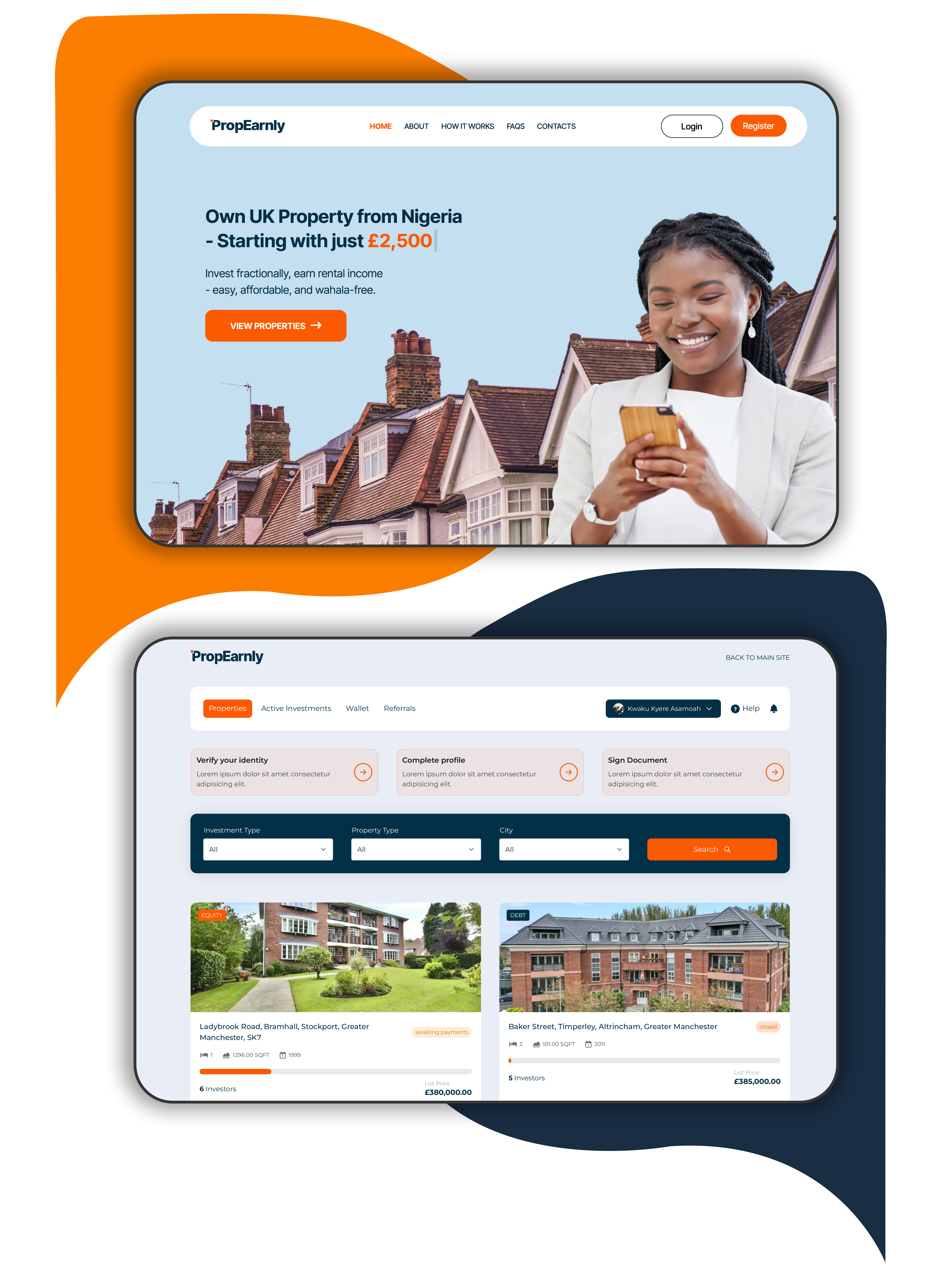 PropEarnly is a digital platform that helps African investors build wealth through prime UK residential and commercial real estate. With our expertise in property, tech, and finance, we make UK property investing feasible for African investors.